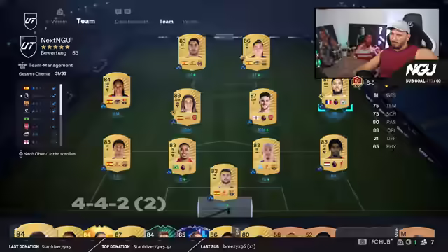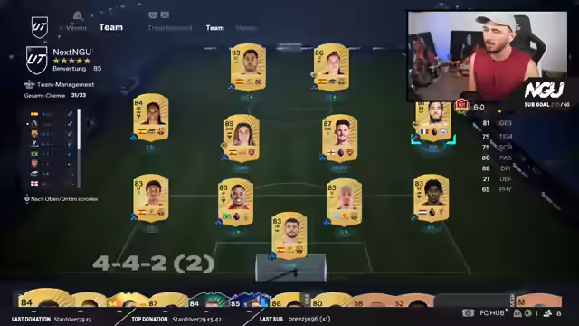 05:56:29Nach dem Durchmarsch durch Division 4 und einem erfolgreichen Aufwärmspiel in Division 3, steht der Streamer vor den Herausforderungen der Weekend League, wo er sofort einen deutlichen Unterschied im Skill-Level der Gegner feststellt. Trotzdem gibt es auch Zeit für Community-Interaktionen, so werden Zuschauerteams bewertet, wobei der Fokus auf Meta-Squads und Verbesserungspotenzial liegt. Es werden Teams wie Nightlife und andere Schwitzer-Squads analysiert, wobei Spieler wie Militaro und Konate diskutiert werden. Die Zuschauerbeteiligung ist hoch, mit Bewertungen und Vorschlägen zur Verbesserung der Teams. Ein besonderes Augenmerk liegt auf der Balance zwischen Defensive und Offensive, sowie auf der Integration von Meta-Spielern wie Wirtz, der als potenzielles Upgrade für viele Teams angesehen wird. Der Streamer gibt auch Einblicke in seine eigenen Erfahrungen und Schwierigkeiten beim Aufstieg in höhere Divisionen und ermutigt die Zuschauer, dranzubleiben und sich seine Tutorials anzusehen.