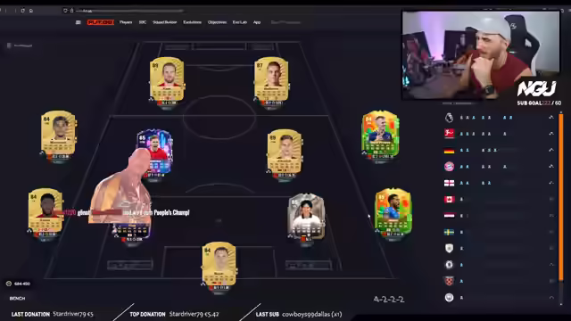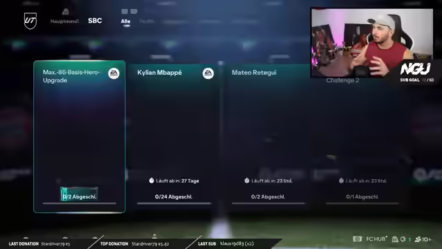 00:12:50Es wird ein besonderes Ziel für den aktuellen Stream angekündigt: Wenn die Community es schafft, während des 12-Stunden-Streams insgesamt 200 neue Subs auf Twitch zu generieren, wird es in der darauffolgenden Woche einen weiteren 12-Stunden-Community-Stream geben. Dieser würde dann ähnliche Specials und Community-Spiele beinhalten, abhängig davon, wie gut der aktuelle Stream ankommt. Es wird betont, dass es sich bei dieser Aktion vorerst auf Twitch-Subs konzentriert, wobei eine mögliche Ausweitung auf YouTube-Abos in der Zukunft nicht ausgeschlossen wird. Diese Ankündigung soll die Zuschauer motivieren, den Kanal zu unterstützen und somit die Chance auf einen weiteren langen Stream mit vielfältigen Interaktionsmöglichkeiten zu erhöhen. Es wird sich auch die Mbappé SBC angeschaut, die mit 24 SBCs und einer Anforderung von 4 Millionen Coins fast nur durch Pay2Win zu schaffen ist. Es wird sich über die Power-Curve lustig gemacht, da der neue Mbappé kaum besser ist als der alte, aber trotzdem 3 Millionen Coins kostet.