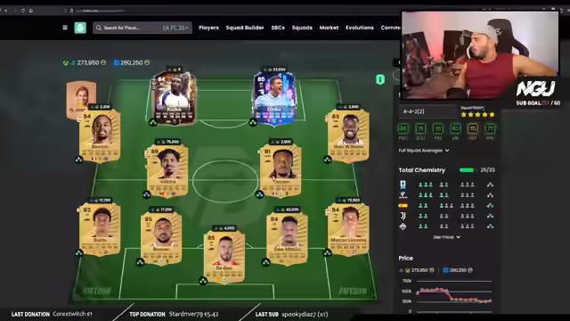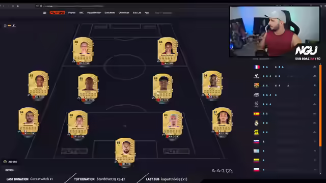 10:15:53Es wird angekündigt, dass es weitere Community-Streams mit Teambewertungen und gemeinsamen Spielen geben wird, der nächste bereits am kommenden Freitag. Der Streamer plant, bald wieder Rivals-Spiele mit Community-Mitgliedern zu spielen. Ein Zuschauerteam wird analysiert und die Positionierung von Bellingham und De Jong wird diskutiert. Es wird empfohlen, die beiden zu tauschen oder eine andere 4-3-3-Formation zu wählen. Die Mitte mit Vitinha, De Jong und Bellingham wird als sehr stark gelobt. Als Verbesserungsvorschlag wird Paco anstelle von Militao in der Abwehr empfohlen, da er deutlich stärker ist. Zudem wird geraten, Bonmarti anstelle von Bellingham zu holen und De Jong auf ZDM zu setzen, sofern die Chemie stimmt. Die Popularität von Bonmarti bei den Profis wird hervorgehoben. Die Zuschauer werden ermutigt, Pina in ihre Teams einzubauen, da der Streamer seit Jahren von ihren Qualitäten schwärmt. Abschließend werden die Zuschauer über die zwei verschiedenen Chats (YouTube und Twitch) aufgeklärt und dazu aufgefordert, an den kommenden 2-on-2 Rivals-Spielen teilzunehmen.