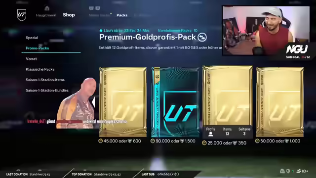01:25:12Das Pack Opening beginnt mit dem Ziel, Cristiano Ronaldo und Pina zu ziehen. Es wird eine Wette gestartet, bei der die Zuschauer tippen, wie viele Walkouts aus einer bestimmten Anzahl von Packs gezogen werden. Die Community beteiligt sich aktiv an der Wette und teilt ihre Einschätzungen im Chat. Es werden verschiedene Karten gezogen, darunter Thüram und McTominay, wobei der Wert und die Verkäuflichkeit der Karten diskutiert werden. Es wird erwähnt, dass nach den Packs das Hero Pack geöffnet wird. Es wird sich bei Stefano für Geschenkabonnements bedankt und sich über die Unterstützung der Zuschauer gefreut. Es wird erwähnt, dass insgesamt ca. 700 Euro in das Spiel investiert wurden. Es wird die Stimmung nach der Weekend League thematisiert und die Hoffnung auf positive Ergebnisse geäußert. Es wird die Karte von Baena hervorgehoben und seine Qualitäten als Spieler betont. Es wird die bevorstehende Wicked League erwähnt und die Vorfreude darauf ausgedrückt.
