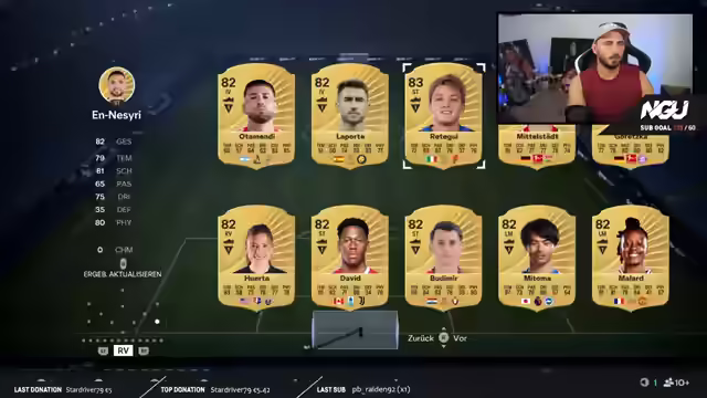 01:59:52Es wird der offizielle Start der Weekend League in FC 26 verkündet und den Zuschauern viel Erfolg gewünscht. Es wird angekündigt, dass der Streamer ab 21 Uhr in die Weekend League einsteigen wird. Es wird die Unterstützung der Zuschauer während der Weekend League benötigt. Es wird über die gezogenen Karten diskutiert, darunter Redondo und Goretzka, und deren potenzielle Nützlichkeit bewertet. Es wird die Hoffnung auf das Ziehen eines Cornerstones geäußert, aber gleichzeitig die Enttäuschung über die bisherigen Ergebnisse zum Ausdruck gebracht. Es wird die Community für die Unterstützung auf YouTube und Twitch bedankt und ein Sub-Goal von 200 Subs erwähnt, bei dessen Erreichen ein weiterer 12-Stunden-Stream stattfinden soll. Es wird angekündigt, dass nach den Packs das Hero Pack geöffnet wird. Es werden Doppel-Walkouts gezogen, darunter Pajor, und deren Wert und potenzielle Verwendung im Team diskutiert. Es wird die bevorstehende Weekend League erwähnt und die Zuschauer dazu eingeladen, den Stream zu verfolgen.