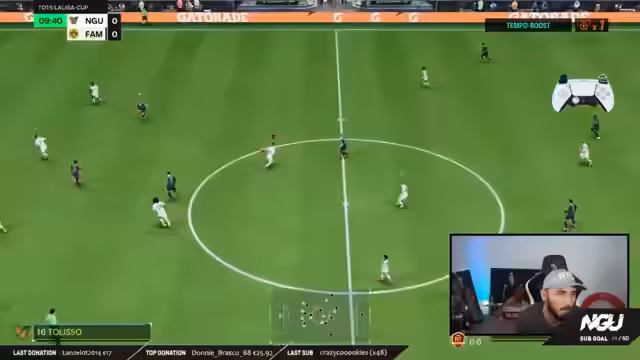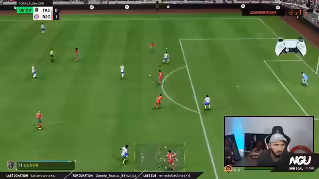 01:48:01Der Stream konzentriert sich auf den La Liga Tots Cup, der in Online-Freundschaftsspielen gespielt wird und zehn Siege für alle Belohnungen erfordert. Der Streamer beschreibt, dass er jeden Cup spielt. Gegen einen bestimmten Gegner setzt er auf eine auf Zeit spielende Strategie, um diesen zu provozieren und zu bestrafen. Der Gegner verteidigt intensiv, aber der Streamer gibt zu, sich in der ersten Hälfte des Spiels eher unterhalten zu haben, was zu einem knappen Torerfolg führte.