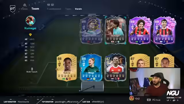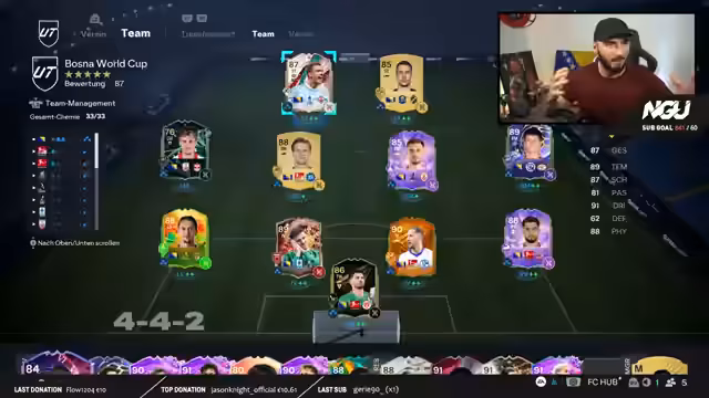 00:45:08Der Streamer betont, dass alle seine aktuellen Aktivitäten in EAFC dem Ziel dienen, seine bosnische Nationalmannschaft zu stärken. Er ergrindet verschiedene Evos, um die Spieler zu verbessern, und erwähnt spezifische Aufgaben wie das Erzielen von Toren in einem Red-Bull-Cup, um benötigte Evos zu bekommen. Er stellt sein aktuelles Team zusammen und analysiert dessen Stärken und Schwächen.