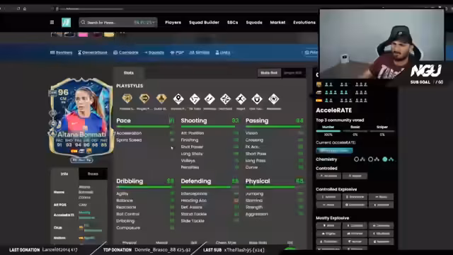 00:34:27Der Streamer beginnt damit, die verschiedenen Spielerkarten zu analysieren, die in den Packs enthalten sein könnten. Er zeigt sich begeistert von Karten wie Mbappé, Vini Jr. und Hansen, deren erstaunliche Eigenschaften und geringen Preise im aktuellen Markt erwähnt. Auch Diskussionen über die Spielertypen und Positionen finden statt, wobei der Streamer häufiger zwischen verschiedenen Optionen wechselt.