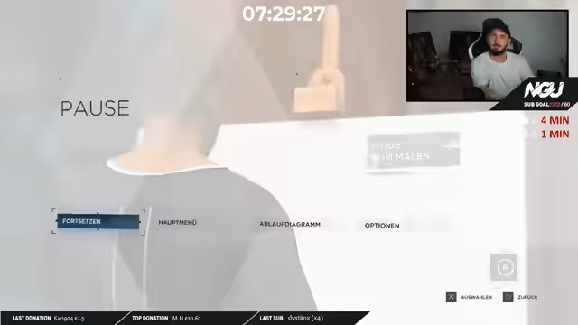 00:08:45Der neunte Tag des NGU Subathons beginnt mit einem willkommenen Raid von Pazzo, der für gute Stimmung sorgt. Nach der Begrüßung der Community und der Zuschauer auf YouTube wird der Ablauf des Tages vorgestellt: Es sollen FIFA, Ready or Not und Detroit Become Human gespielt werden. Die anfängliche Energie ist trotz der langen Streamdauer bereits spürbar, und Streamer bittet um Unterstützung durch Likes und aktiviert den Sub-Sound für das anstehende Gameplay.