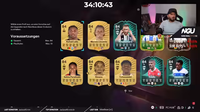 04:41:43Hullit wird erfolgreich in nur fünf Minuten durch vier Spiele evolutioniert. Der Streamer wendet athletische Änderungen an, um Hullit weiter zu optimieren, insbesondere für die Position als ZDM. Die geplante Evo-Reihe (inklusive Playstyle-Upgrades wie Tiki-Taka) wird als ideal für das Mittelfeld beschrieben. Der Prozess demonstriert die Effizienz der neuen Evolution-Mechaniken.