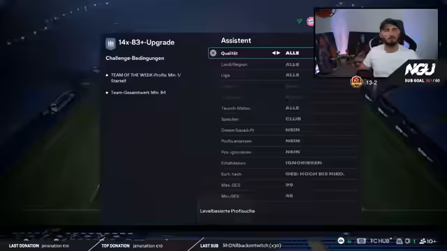 01:13:25Der Streamer ärgert sich massiv über die ihm im Spiel zugewiesenen Aufgaben. Er muss eine große Anzahl von Partien mit spezifischen Einschränkungen, wie z.B. das Erzielen von Toren mit Spielern bestimmter Nationalitäten und Mindestattributen, absolvieren. Er empfindet diese Aufgaben als sinnlosen Bullshit und nicht als echten Content. Aufgrund dieser lästigen Pflichten kann er wie gewünscht nicht einfach ungestört zocken oder die 4-4-1-1 Taktik in entspannten Matches testen.