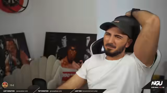 00:38:44Nach mehreren Abschweifungen und persönlichen Erzählungen vom Streamer, insbesondere über seine E-Sports-Karriere, konzentriert sich der Streamer wieder auf das Hauptereignis des Abends. Er bittet die Zuschauer, am Stream dranzubleiben, da er seinen Sohn ins Bett bringen muss und sich in wenigen Minuten wieder für die Watch Party bereit macht. Gleichzeitig beklagt er sich über die schlechte Verbindung und technische Probleme, die das aktuelle Spielvergnügen deutlich beeinträchtigen.