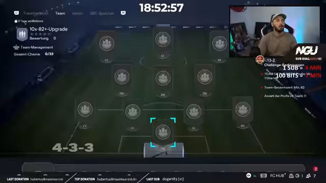 00:43:00Der Streamer widmet sich dem Bau einer laufenden SBC und wägt verschiedene Spieleroptionen ab. Nach intensiver Analyse entscheidet er sich für den Rechtsverteidiger Dirk Bach, dem er den Playstyle 'Relentless Plus' verpasst, um aus ihm einen potenziellen Monster-Spieler zu formen. Gleichzeitig nutzt er eine neue, wiederholbare Evo-Möglichkeit, um Spieler wie Dzeko und Matsukubo auf maximale Ausdauer zu pushen.