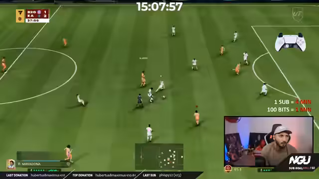 05:30:32Im Spiel gegen einen Gegner mit 4-5-1 Formation, die oft Schwächen für die eigene 4-4-2 Formation birgt, werden wichtige Tore erzielt. Ein Spieler namens Maradona wird besonders hervorgehoben, da er durch seine exzellenten Werte und den Spielstil Raserei auffällt und ein Schlüsselspieler im Mittelfeld ist. Der Streamer experimentiert mit Taktiken, insbesondere mit der sogenannten Monster-Taktik, die sich im Spiel als effektiv erweist. Zudem gibt es intensive Diskussionen über Ecken, um die optimalen Spieler und Anspielstationen zu bestimmen.