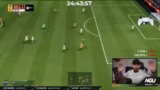 03:02:02Der Streamer wird durch anhaltende und schwere technische Probleme, insbesondere eine katastrophale Verbindung, massiv in seinem Spiel beeinträchtigt. Er kann sich kaum drehen, dribbeln oder angemessen auf das Spiel reagieren, was zu frustrierenden Spielverläufen und Chancenverlusten führt. Nach mehreren verpassten Gelegenheiten und einer Reihe unglücklicher Tore des Gegners, die er auf die schlechte Verbindung zurückführt, verliert er die Geduld. Er bricht den Stream vorzeitig ab, da er keinen Spaß mehr an dem Spielen unter diesen Bedingungen hat und seine Gesundheit wichtiger ist als das Spielen.