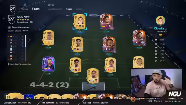 00:08:18Mirza begrüßt die Zuschauer herzlich zu einem neuen Stream und betont die Devise „Never Give Up“, besonders nach dem gestrigen Desaster in der Weekend League. Er berichtet, wie er von einer 9:1-Bilanz auf 10:5 abgerutscht ist, nachdem er nach einer knappen Niederlage in der Verlängerung deprimiert und wütend in die nächsten Spiele gegangen war. Dieses Erlebnis motiviert ihn, heute umso konzentrierter und fokussierter zu spielen. Er kündigt an, heute drei verschiedene 4-4-2-Varianten zu nutzen, darunter seine defensive Standard-4-4-2, eine offensive 4-4-2 flach und eine 4-2-4, zwischen denen er je nach Spielverlauf wechseln wird. Die Raute-Formation, die er gestern ausprobiert hatte, wird er nicht von Anfang an spielen, da sie defensiv zu anfällig ist, aber als Option für spätere Spielphasen beibehalten. Mirza bedankt sich für die Unterstützung und bittet die YouTube-Zuschauer, den Stream zu liken, um die 100 Likes zu erreichen.