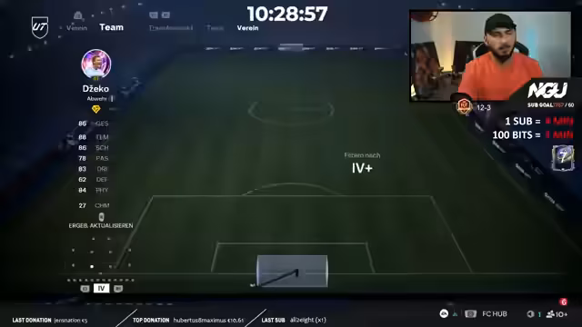 04:01:15Der Streamer zeigt sein aktuelles Team auf dem RTG-Account, das evolutionierte Spieler wie Ahmed Hojic, Gazibegovic und Lamine enthält. Er beschreibt das Team als sehr stark, merkt aber an, dass die Chemie mit einem deutschen Coach nicht optimal ist und er dies anpassen muss. Ein Problem, das er hervorhebt, ist die große Menge an erstklassigen Spielern, die er besitzt, was ihn vor Herausforderungen bei der Team-Zusammensetzung stellt und den Platz begrenzt. Spieler wie Kunde werden auf die Bank verbannt, da sie für das Starting-Team nicht qualifiziert sind.