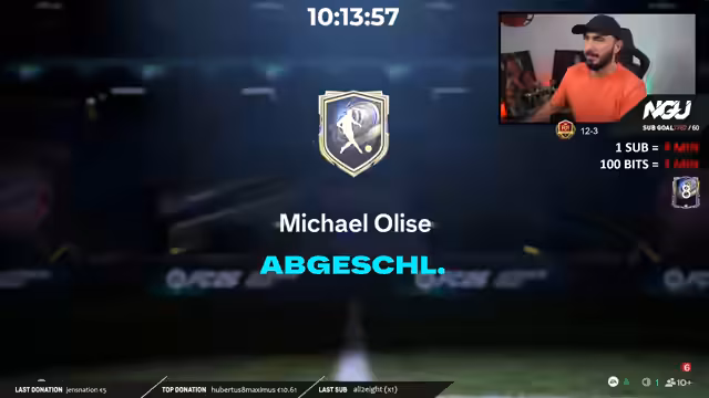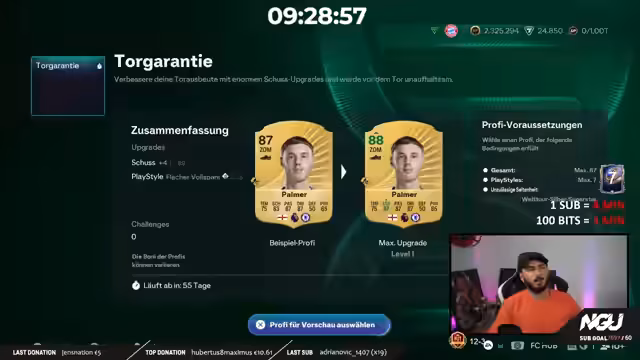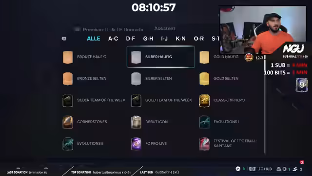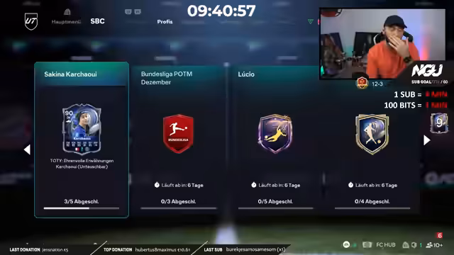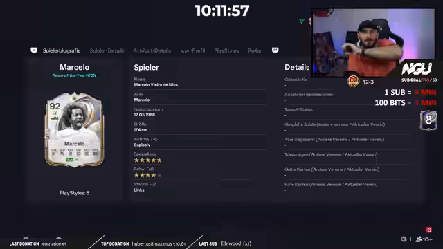 05:42:10Der Streamer reflektiert über seinen laufenden Subathon, der seit dem ersten Dezember täglich von 18 bis 3 Uhr läuft und bereits fast zwei Monate andauert. Er ist stolz auf seine Leistung, neun Team of the Year-Karten zu ziehen, was im Vergleich zu den Vorjahren, in denen er oft nur eine oder gar keine gezogen hat, ein großer Fortschritt ist. Er äußert den starken Wunsch, noch einen zehnten TOTY, idealerweise aus den Crafting Packs, zu ziehen, um das Jahr perfekt abzuschließen und sich für den anstehenden intensiven Gameplay-Grind zu belohnen.