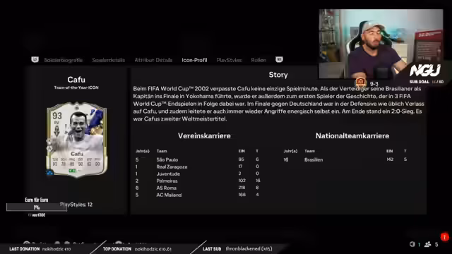 00:48:02Der Streamer startet das erste Weekend League Spiel mit Cristiano Ronaldo und erzielt direkt das 1:0 mit seiner ersten Ballberührung. Er betont, dass CR7 der beste der Welt ist und es erneut bewiesen hat. Es wird die neue Taktik 4-2-1-3 ausprobiert. Der Streamer beschreibt, wie er antizipiert und wie gut sein Team ist. Er lobt Cristiano für seinen Einsatz und seine Beweglichkeit, die an seine Prime erinnern. Es wird überlegt, ob man die Evo zweimal machen kann. Der Streamer erklärt seine Trading-Strategie, bei der er Karten verkauft, wenn sie fast den Extinct-Wert erreichen, um das Risiko eines Wertverlusts zu vermeiden. Er zeigt seine Investitionen in Mbappé und Theo Hernandez und erklärt, warum er an deren Wertsteigerung glaubt. Es wird erwähnt, dass er am Sonntag in Frankfurt beim DFB Campus sein wird.