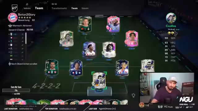 03:47:46Der Stream zeigt eine Mischung aus Begeisterung über die Fähigkeiten von Cristiano Ronaldo und tiefe Frustration über das Gameplay. Besonders im Fokus steht der EVO von CR7, der mit 99 Beweglichkeit als einzigartig und überlegen beschrieben wird. Gleichzeitig wird das Spiel als 'dumm', 'skillos aufgebaut auf Casuals' und 'verbuggt' kritisiert, was zu unnötigem Ballverlust und defensiven Fehlern führt.