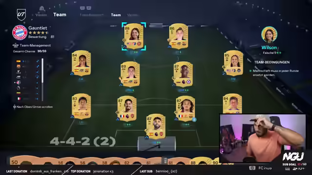 02:54:42Der Streamer äußert sich zu der Übernahme von Sordis und den möglichen Auswirkungen auf das Spiel, einschließlich einer möglichen 90+ Karte für Cristiano Ronaldo. Er erwähnt, dass er fünfmal die Woche streamt und verweist auf seine Social-Media-Kanäle für Updates. Anschließend spricht er über den Gauntlet-Modus, ein neues Feature im Spiel, bei dem man täglich einen neuen Versuch hat und keine Spieler doppelt nutzen darf. Es wird überlegt, wie man die Teams am besten aufteilt und ob die Gegner stärker werden. Der Streamer plant, den Gauntlet-Modus als Testmodus zu nutzen und verschiedene Spieler auszuprobieren.