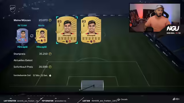 01:36:35Der Streamer bedankt sich bei Zuschauern für Twitch Primes und betont, wie sehr er jede einzelne Unterstützung schätzt. Er kündigt an, Van Dijk zu verkaufen und freut sich über den erfolgreichen Verkauf von Spielern. Es wird kurz über den Spieler Hincapi diskutiert und der Streamer äußert seine Vorfreude auf Loriente. Er freut sich über positives Feedback zum neuen FIFA-Jahr und kündigt an, dass er nun auch auf YouTube streamt. Der Streamer bittet um Likes auf YouTube, um den Algorithmus zu pushen und kündigt an, dass er täglich Gas gibt, um den Kanal voranzubringen. Er erklärt, dass Frauen aktuell die Meta im Spiel sind und dass er Koundé zunächst mit einer Leihkarte testen wird. Er spricht über Pay-to-Win-Squads und betont, dass die meisten Spieler sich ihre Teams Step-by-Step ergrinden. Er bedankt sich bei Litty für zahlreiche Subs und kündigt an, das Buch-Giveaway zu machen, sobald die 60 Subs voll sind.