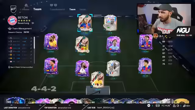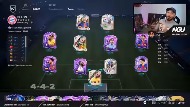 03:09:22Zu Beginn der Weekend League werden Entscheidungen über die Teamzusammenstellung getroffen. Der Streamer überlegt, welcher Spieler auf der linken Position eingesetzt werden soll, um einen frischen Spieler für San Maximin zu bringen. Dabei wird kritisch hinterfragt, ob Schellen noch zeitgemäß ist und ob seine Pro-Gaming-Vergangenheit ihn noch konkurrenzfähig macht. Der Fokus liegt auf der Wahl von Spielern, die optimal in die Taktik passen und sich durch hohe Werte auszeichnen.