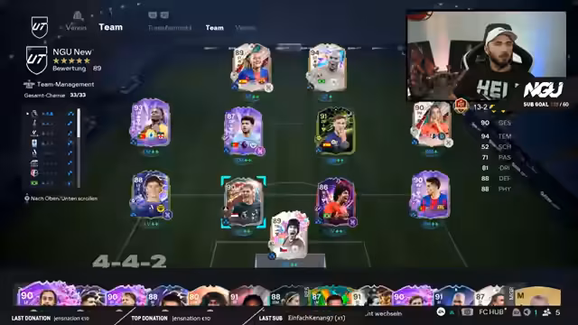 04:11:55Der Streamer experimentiert mit den spielerspezifischen Taktiken und Evolutionspfaden. Er denkt über die Verleihung von Stilen wie 'Kante Plus' und 'Turbocharged' nach und ist überzeugt, dass Geschwindigkeitsunterschiede über 92 Pace einen spürbaren Vorteil im Gameplay bringen. Er stellt das finale Team für die nächste Weekend League vor und plant, neue Spieler wie Baena zu entwickeln. Der Fokus liegt auf der optimalen Ausnutzung der Stärken jedes einzelnen Akteurs.