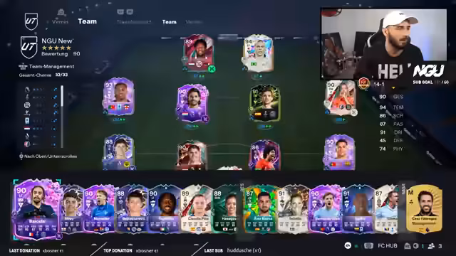 02:15:18Er äußert seine Unzufriedenheit mit der aktuellen Teamkombination und merkt an, dass es 'keine Harmonie' gibt und die Verbindung 'kacke' ist. Er fühlt sich nicht wohl mit den Spielern und wechselt viel, was aber riskant ist, da ein Verlust dann der Teamänderung zugeschrieben werden könnte. Er experimentiert mit unterschiedlichen Spielern und sucht nach einer besseren Chemie und einem besseren Gefühl für das Team, ist aber noch nicht fündig geworden und kritisiert das Team als 'behäbig'.