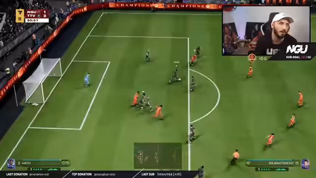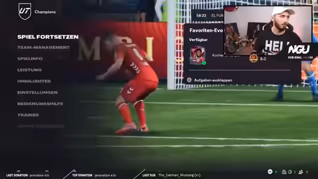 01:39:38Nach einer schwierigen Partie, in der er lange führte und das Spiel verdient hätte gewinnen müssen, kommt es durch mehrere Situationen und, wie er es ausdrückt, 'Hilfe von EA', zum Umschwung. Der Gegner gleicht aus und überholt ihn. Der Streamer ist 'bitter' enttäuscht und frustriert, da er das Spiel im Griff hatte und es innerhalb von Sekunden verloren ging. Trotz der Niederlage bleibt er kämpferisch und will weitermachen.