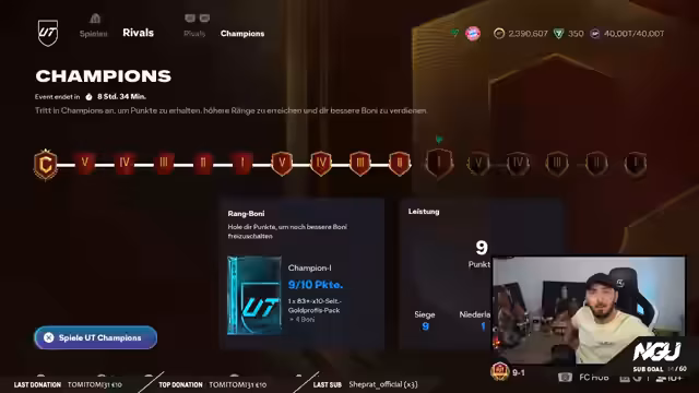 00:08:43Der Streamer begrüßt seine Zuschauer zum ersten Stream am Montag und kündigt eine entspannte Weekend League-Session an, die ohne viel Wut ablaufen soll. Er freut sich über die zahlreiche Beteiligung im Chat und spricht direkt ein wichtiges Ereignis vom Vortag an: den Bruch des 12-Wins-Fluchs. Nach langer Zeit, in der er immer wieder bei 12 Siegen in der Weekend League festhing, konnte er gestern endlich 13 Siege erzielen. Dieses Erfolgserlebnis motiviert ihn für den heutigen Stream, in dem er mit seinem Main-Account und einer starken brasilianischen Flügelzange, bestehend aus Vini Screen und dem neuen Rodrigo, antreten wird. Er präsentiert sein Team, das in der Mitte Pina und Baena, auf den Flügeln Vini und Rodrigo, im zentralen Mittelfeld Mariona und Busquets, in der Defensive Alba, Campiasso, Saliba, Marquinhos und Chevalier umfasst. Der Plan ist, mit dieser Aufstellung erfolgreich zu sein und möglicherweise noch weitere Top-Spieler zu ziehen, da er viele Packs gespart hat.