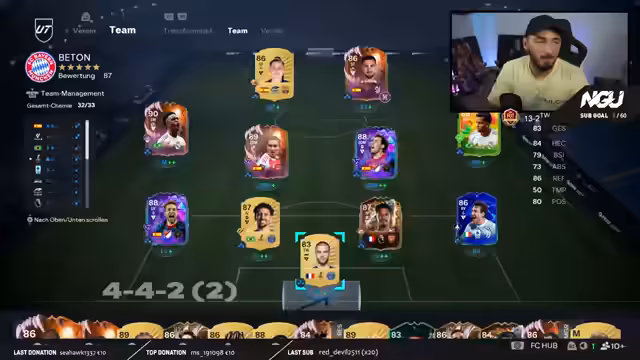 00:30:03Der Streamer diskutiert die Effektivität von Stürmern ohne Pass-Playstyles und kommt zu dem Schluss, dass es keinen Sinn macht, solche Spieler im Sturm einzusetzen, da sie nicht die nötige Wirkung erzielen. Er würde Mbappé eher auf dem Flügel spielen als im Sturm, da er keine Pass-Playstyles besitzt. Er schwärmt von der Karte Pina Cornerstone, die trotz ihres hohen Preises von 1,2 Millionen immer noch als die beste Stürmerkarte im Spiel gilt. Er betont, dass Pina in Sachen Quirligkeit und Effektivität im Strafraum unübertroffen ist und selbst Top-Spieler wie R9 oder Mbappé nicht an sie heranreichen. Er startet in die Weekend League und erzielt schnell Tore mit Pina und Baena, wobei er die Leichtigkeit des ersten Spiels hervorhebt. Rodrigo wird ebenfalls für seine Stärke gelobt. Er erwähnt, dass Totti am 27. angeblich als Pre-Order-Icon kommen soll und mit Technical Plus perfekt zur Meta passen würde. Der Streamer zeigt sich frustriert über die Schwierigkeiten in einem Spiel, in dem er trotz Überlegenheit nur knapp führt und die Pässe seiner Spieler oft ungenau sind. Er muss sich stark konzentrieren, um das Spiel zu drehen und betont die Wichtigkeit, ruhig zu bleiben und alternative Formationen zu nutzen, wenn das Spiel nicht läuft.