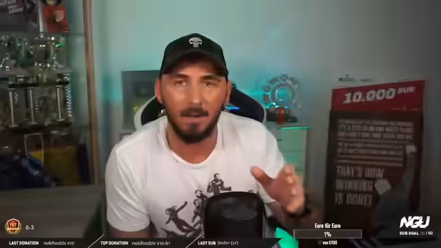 04:56:59Nachdem ein Zuschouver über eine schwierige Kindheit spricht, teilt der Streamer eigene Erfahrungen. Er beschreibt eine von seinem Vater geprägte, strenge Erziehung und erzählt von seiner anfänglichen Isolation als angehender Content-Creator. Sein Weg war geprägt von Misstrauen und Ablehnung durch seine Umgebung, bis er mit seiner Frau Sarah eine unterstützende Person fand. Durch sein Engagement in Kampfsport konnte er Selbstvertrauen aufbauen und lernte, seinem eigenen Weg zu folgen, anstatt sich von der Meinung anderer leiten zu lassen.