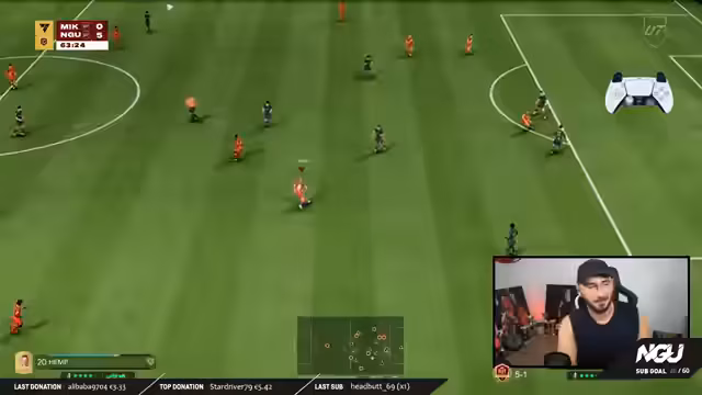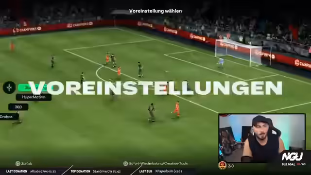 00:27:13Im Laufe des Streams werden technische Tipps für das Gameplay verraten. Ein zentraler Trick ist das wiederholte Antippen der R2-Taste beim Ballbesitz, um einen permanenten Pace-Boost zu erhalten und so schneller zu sein als die Verteidiger. Nebenbei wird die Wahl der Taktik diskutiert. Der Streamer startet häufig mit 4-4-2 oder 4-2-3-1, wechselt aber auf die Monsterraute, wenn er unter starkem Druck steht. Spieler wie Mariona im variablen Mittelfeld werden für ihre hohe Beweglichkeit gelobt.