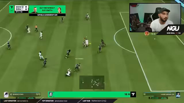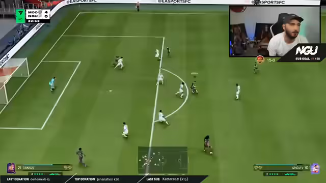 02:55:43Der Streamer verliert sein erstes Spiel deutlich mit 0-5 und beschreibt eine extrem frustrierende Situation. Er schildert ein komisches Gameplay-Problem: Er spielt mit einer 4-4-2-Formation, bei der seine beiden Zentralmittelfeldsysteme und Flügelspieler unkontrolliert nach vorne laufen und so eine komplette Lücke in der Mitte hinterlassen. Dies ermöglicht dem Gegner, ihn mit einfachen Passkombinationen auszkontern und ihn 'wie ein Baby' auseinanderzunehmen. Die erste Halbzeit war dadurch komplett unspielbar für ihn.