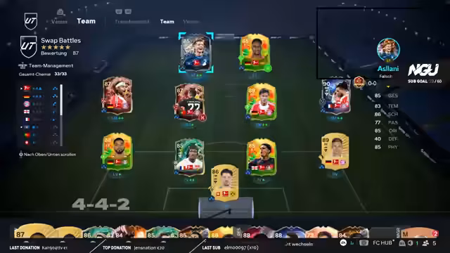 04:43:37Nach dem erfolgreichen Cup-Sieg konzentriert sich der Streamer auf die Evolution seiner Academy-Spieler, Baretarevic und Kelly. Er ist sich unsicher über den optimalen Weg und sucht aktiv die Meinungen der Community. Mittels eines Customizing-Tools auf der Website Futschi G versucht er, den zukünftigen Wert der Spieler zu simulieren und die passenden Debütrollen sowie Playstyles zu wählen. Das Ziel ist es, beide Spieler zu möglichst starken Einheiten mit klaren Stärken und Rollen im Team zu entwickeln.