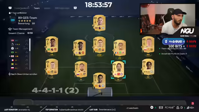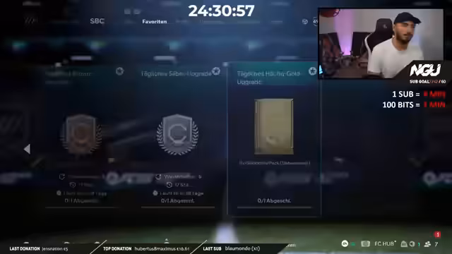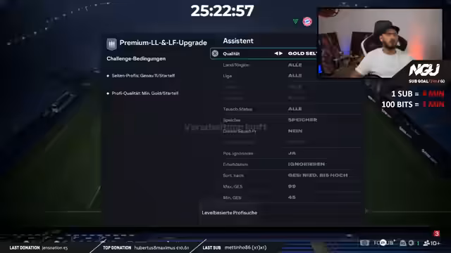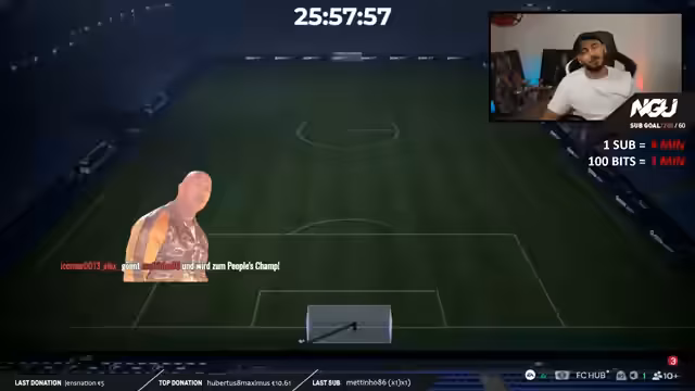 00:09:52Der Streamer begrüßt seine Zuschauer zum 52. Tag des NGU Subathons und kündigt einen besonderen Stream an. Er wurde zu einem Turnier, dem Start Select TOTY Cup, eingeladen, bei dem eine Million FC-Points gewonnen werden können. Es handelt sich um ein 16-Mann-Creator-Turnier mit internationalen Streamern. Zusammen mit den Partnern Start Select und Footbin wird der Streamer um 20 Uhr 30 ein Team auf Footbin bauen und um 21 Uhr ins Turnier starten, das als Best-of-One im Achtelfinale ausgetragen wird.