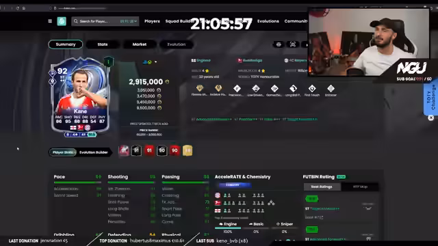 06:12:59Nach der Turnierbilanz werden zahlreiche Pack-Öffnungen gezeigt, bei denen der Streamer über den volken Speicher klagt, der hauptsächlich von 86er-Spielern gefüllt ist. Dieser Zustand wird als primäres Problem identifiziert. Spieler wie Gabriel, Messi und Olysee werden diskutiert, wobei ihre Eignung für den Main-Account geprüft wird. Ein Vergleich zwischen einer Evo-Karte und einem anderen Spieler mit höherer Pace und bereits vorhandenem Press Proven wird angestellt, was zu der Feststellung führt, dass die Evo nicht unbedingt die bessere Wahl ist.