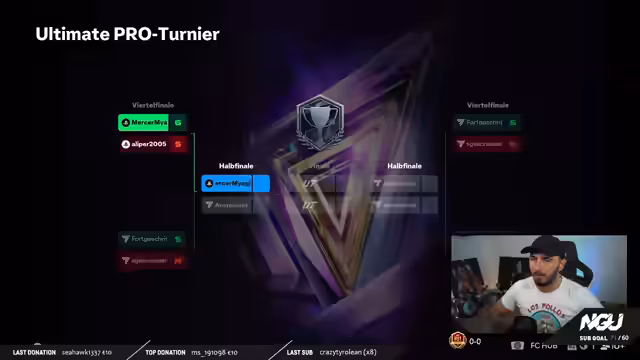 07:58:12Im Ultimate Pro-Turnier muss der Streamer die Welt-Tour-Superstars-Liga bewältigen, wobei er ein Team mit maximal 4 Spielern über 88 OVR einsetzen darf. Er überlegt, ob er Kürmann spielen soll, entscheidet sich aber aufgrund seiner Langsamkeit und fehlenden Playstyles dagegen. Er muss 10 Tore erzielen, bevor er ein Spiel gewinnen darf, was ihn frustriert, da er zuvor ein Spiel trotz 5 Toren verloren hat, weil der Gegner quittete und das Spiel als Niederlage gewertet wurde. Der Streamer konzentriert sich weiterhin auf das Testen der neuen Flachschuss-Mechanik. Er demonstriert, wie ein kurzes Antippen der Schusstaste im Strafraum, ohne langes Aufladen, zu schnellen und effektiven Toren führt. Er vermutet, dass der Gegner im Stream ist, da dieser ebenfalls beginnt, diese Flachschüsse zu nutzen. Er erklärt, dass diese Methode besonders effektiv ist, wenn die Server schlecht sind oder der Gegner nah am Spieler ist und eine schnelle Reaktion erfordert. Der Streamer zeigt anhand von Beispielen, wie er den Ball annimmt und sofort mit einem kurzen Tippen auf die Schusstaste abzieht, wodurch der Ball im Netz landet, bevor der Gegner blocken kann. Er testet weiterhin, aus welcher Entfernung diese Schüsse am besten funktionieren.