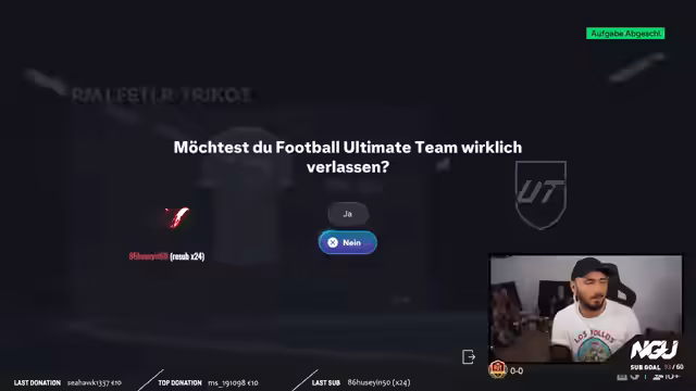 08:46:21Nach einer kurzen Pause und dem Abschluss des aktuellen Cups stehen noch drei Stunden des Streams bevor. In dieser Zeit sollen Teambewertungen für Zuschauer durchgeführt werden, gefolgt von Rivals-Spielen, bei denen der Streamer möglicherweise mit einigen Zuschauern zusammenspielt. Es wird auch erwähnt, dass der Streamer aufgrund von Verbindungsabbrüchen und Niederlagen im Silber Cup Schwierigkeiten hatte, 20 Siege zu erzielen, was ihn dazu bewogen hat, Pelé zu erspielen. Für die Teambewertungen wird erklärt, wie Zuschauer ihre Teams über Footbin oder Foot.gg erstellen und den Link per Flüsternachricht auf Twitch senden können, da YouTube diese Funktion nicht bietet. Die Freude über den erfolgreichen Abschluss des Finals und die verbleibenden Aufgaben des Streams ist spürbar.