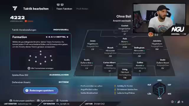 04:31:54Es wurde eine detaillierte Analyse verschiedener Formationen durchgeführt, darunter das 4-4-2 als aktuelle Hauptformation, aber auch das 4-4-1-1 und 4-5-1 als mögliche Alternativen für bestimmte Gegner. Die Vorteile der 'falschen Neun' wurden erläutert, insbesondere ihre Effektivität bei der Nutzung der Flügel für Dreieckspässe, da die Mitte oft für das Durchbrechen ungenutzt bleibt. Es wurde auch über die Evolution von Spielern wie Baena gesprochen, wobei der neue Baena als deutlich stärker als die vorherige Version beschrieben wurde. Der Streamer betonte die Wichtigkeit, Spieler-Evolutionen strategisch zu planen und nicht zu überstürzen, da zukünftige Evos weitere Möglichkeiten bieten könnten. Die Bedeutung von Pass-Styles wie Incisive und Tiki-Taka wurde erneut hervorgehoben, wobei Incisive als besonders kritisch für das Off-Ball-Spiel angesehen wurde, um die Flügel effektiv nutzen zu können. Die Community wurde ermutigt, diese taktischen Überlegungen in ihre eigenen Teams zu integrieren.