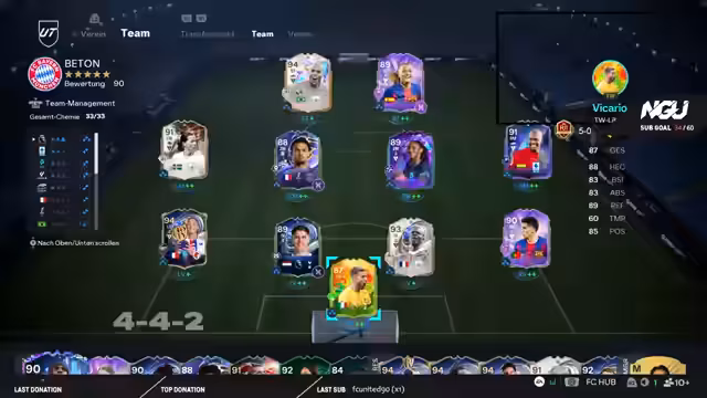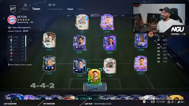 04:00:22Der Streamer stellt seine Pläne für die FUT Birthday Woche vor. Er hat auf seinem Main-Account noch keine Birthday-Karten geöffnet, was er aber im Verlauf der Woche ändern wird. Sein Ziel ist es, die karten zu evolutionieren und sein Team zu verstärken. Die Planung für die kommende Weekend League steht im Fokus, bei der er gemeinsam mit der Community Erfolge erzielen möchte. Er testet verschiedene Formationen, wie 4-4-2 und 4-4-1-1, und stellt fest, dass er persönlich mit 4-4-2 besser zurechtkommt.
