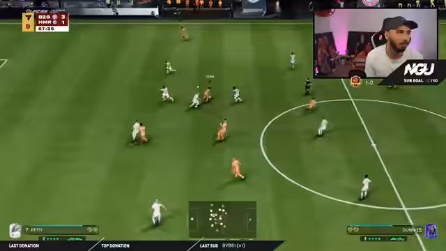 00:38:19Die ersten Spiele der Weekend League beginnen, doch es kommt zu erheblichen technischen Schwierigkeiten. Die Verbindung und das Gameplay sind laut Streamer katastrophal, was die Spielflä stark beeinträchtigt. Während des ersten Spiels muss der Streamer einen 3:1-Vorsprung sichern und vermeiden, ins Elfmeterschießen zu geraten. Trotz des Sieges ist der Streamer unzufrieden mit der Spielleistung und der Serververbindung, was den Fokus auf die technische Stabilität der Streams unterstreicht, die besonders bei Mehrplattform-Streaming ein Problem darstellt.