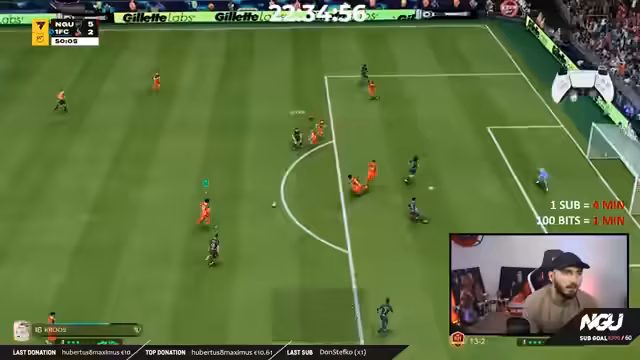 05:24:21Während des Spiels wird die Taktik von 4-4-2 auf eine Monster-Taktik gewechselt, was zu einer signifikanten Veränderung im Spielverlauf führt. Der Streamer merkt an, dass ein solcher Wechsel erst ab der 30. Minute sinnvoll ist, da die CPU des Gegners sich anpasst und die Taktik früher ineffektiv sein kann. Die Monster-Taktik ermöglicht eine bessere Kontrolle und Dominanz im Mittelfeld, während das 4-4-2 System besonders gut gegen Gegner funktioniert, die durch direkte Angriffe über die Flügel überwunden werden können.