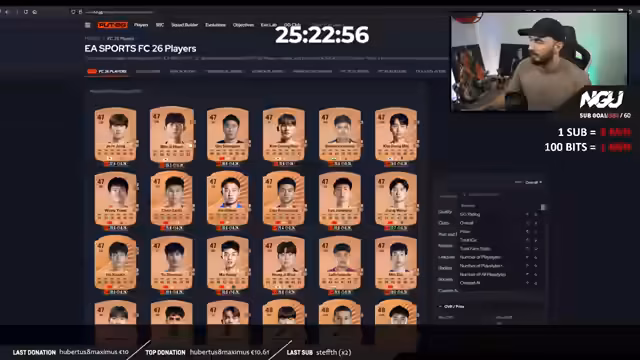 01:46:58Der Streamer beginnt mit dem Bronze Cup, bei dem er die Mission hat, ein Tor in 15 separaten Spielen zu erzielen, ohne dass Siege erforderlich sind. Er kauft gezielt günstige Spieler wie Botchway und Good Win My Life, da teure Spieler für diese Art von Challenge keinen Sinn ergeben. Er äußert seine Verwirrung über das Belohnungssystem, bei dem Belohnungen auch für verlorene Spiele ohne Tore vergeben werden, was er als unfair empfindet. Er beschäftigt sich intensiv mit der Chemie der Spieler und der Taktik, um die Mission effizient zu erfüllen.