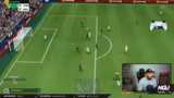 03:32:29Ein zentraler Punkt im Stream ist eine umstrittene Szene, bei der dem Streamer ein klarer Foulschutz und damit ein Elfmeter vorenthalten wird. Nach dem Prinzip des angeblichen Vorteils wird weitergespielt, ohne dass eine klargegebene Torchance entstand. Der Streamer ist fassungslos über diese, aus seiner Sicht, einzigartige und unfassbare EA-Logik und ruft das Publikum auf, über das Thema in den sozialen Medien diskutieren zu lassen, da er dies im echten Fußball noch nie gesehen hat.