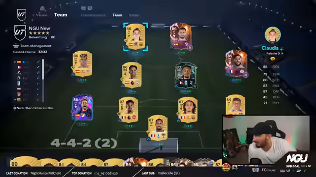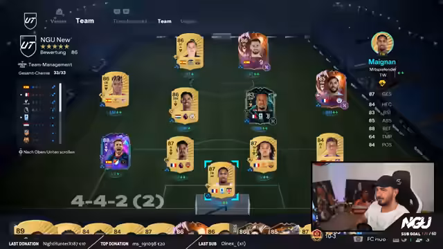 02:45:45Die Session neht sich dem Ende zu. Der Streamer ist grundsätzlich zufrieden mit der Spielaufstellung (4-4-2), merkt aber an, dass er wegen seines Zustands ungeduldig war. Er verspricht, sich morgen besser zu konzentrieren und gibt zu, dass das Spiel sich aktuell sehr zufällig anfühlt. Er bedankt sich nochmals bei allen Anwesenden für die Unterstützung und die gemeinsame Zeit und hofft, dass seine Community Spaß mit ihm hat. Er freut sich auf den morgigen Hauptstream und verspricht, dort wieder alles zu geben.