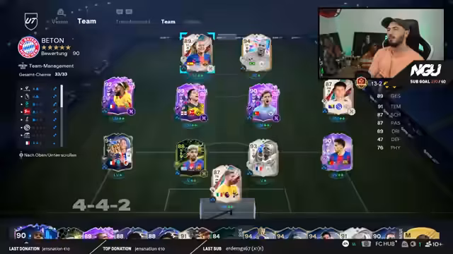 00:11:57Neben dem Hauptspiel gibt der Streamer Einblicke in sein Team-Building für FIFA 26. Er zeigt seine Formationen, bevorzugt eine 4-4-2, und bewertet Spieler und ihre Styles. Er berät Zuschauer, wie sie ihre eigenen Teams verbessern können, indem sie Formationen und Taktiken anderer beobachten. Auch diskutiert er die Stärken von Spielern wie Baraktarevic und wie man deren Potenzial durch bestimmte Playstyles maximieren kann.