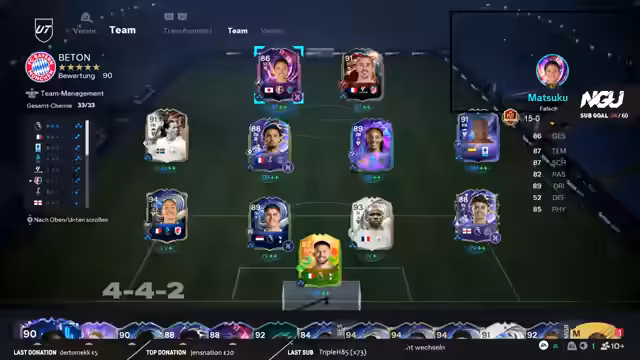 05:40:51Der Streamer kritisiert scharf die Leistung seiner beiden Stürmer, Matsukubo und Griezmann, vehement. Er ist der Meinung, dass sie insbesondere in knappen Spielen und gegen bessere Gegner komplett versagen und keine Laufwege anbieten. Im Gegensatz dazu preist er die Einwechselspielerin Pina, die nach der Pause immer für Tempo und Torgefahr sorgt und als konstant beste Spielerin gilt. Diese Diskrepanz führt dazu, dass er sein System anpasst und zukünftig andere Spieler, wie Dzeko und R9, in der Offensive einsetzen möchte.