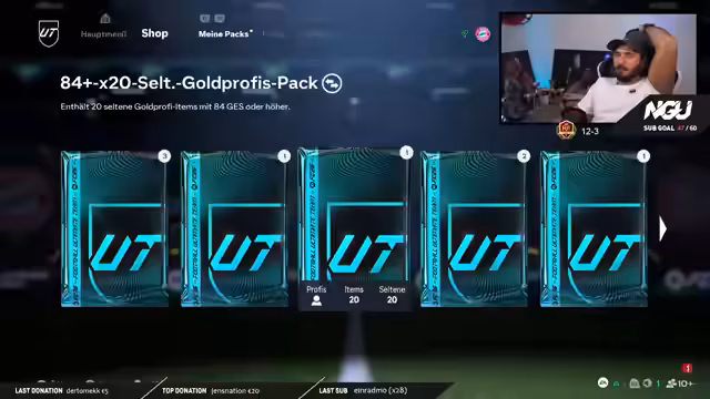 01:41:32Der Streamer konzentriert sich auf die Vorbereitung für sein Fantasy Team und benötigt dringend Futterkarten, um Ori mitnehmen zu können. Ori ist in sieben Tagen weg, daher muss der Pack-Opening-Termin bei Foodbirthday sichergestellt werden. Um dies zu gewährleisten, wird er einige Packs für später aufsparen und zuerst kleinere Packs öffnen, um Futter zu sammeln. Die Hauptsorge ist, dass ohne Futter Ori nicht mitgenommen werden kann.