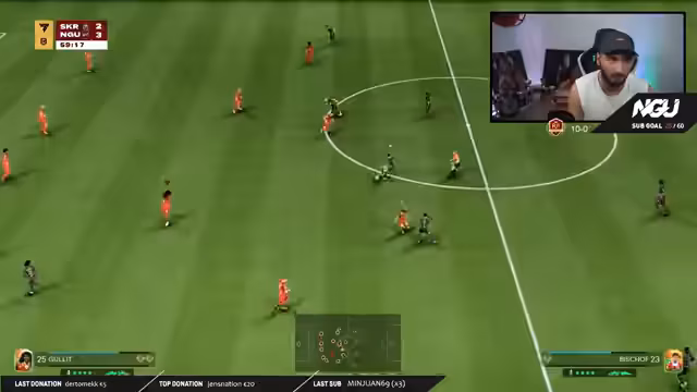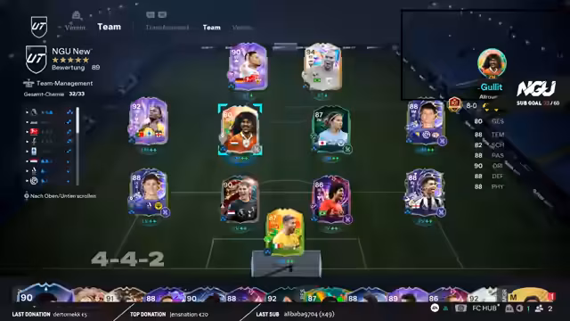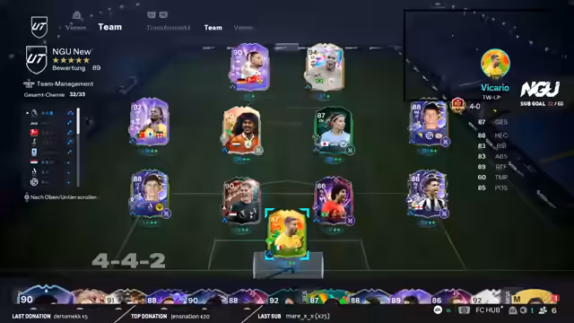 01:47:39Der Einstieg in die Weekend League gestaltet sich schwierig und unbefriedigend. Der Streamer beschreibt seine Performance als kraftlos und unaufmerksam, obwohl er über ein starkes Squad verfügt. Er gibt an, im Gegensatz zu Turnierspielen keinen konzentrierten Fokus finden zu können und macht häufige Fehler im Passspiel und im Abschluss. Als Reaktion wechselt er mehrfach die Formation zwischen 4-4-2 und 4-5-1, um eine stabilere defensive Grundlage zu schaffen.