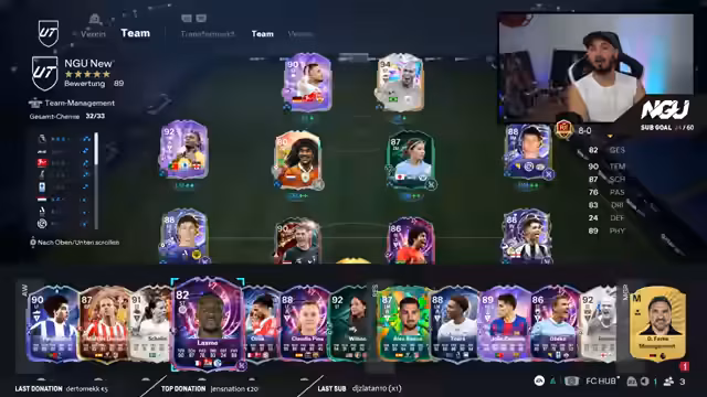 01:15:37Bevor es mit R9 in die Weekend League geht, führt der Streamer letzte Tests und Feinjustierungen im Team durch. Er entscheid sich, den Stuttgarter Spieler Unterf für das Turnier zu testen und fügt ihn dem Team hinzu. Gleichzeitig wird die Torwartposition besprochen, wobei sich der Streamer für Vissera entscheidet. Das finale Team wird vorgestellt, das sowohl für die Weekend League als auch für das Turnier startklar ist, mit einem Fokus auf Chemie und individuelle Stärken der Spieler.