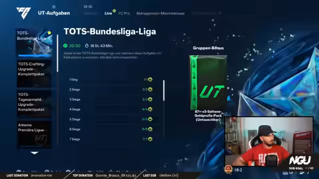 00:18:58Die Vorbereitung für den TOTS Bundesliga Cup beginnt. Der Fokus liegt auf der Erstellung eines völlig neuen Teams auf dem RTG-Account, um andere Spieler und Taktiken zu testen. Das Ziel ist es, ein Team mit sieben TOTS-Spielern aufzustellen, wobei hohe und niedrigere bewertete Spieler diskutiert werden. Die Auswahl der Spieler wird interaktiv mit der Community vorgenommen, um die bestmögliche Aufstellung für den Wettbewerb zu finden.