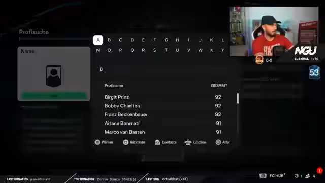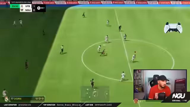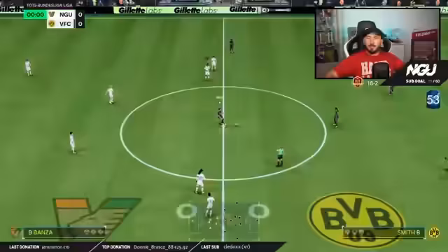 00:52:33Die ersten Spiele des TOTS Bundesliga Cups beginnen. Der Streamer steigt mit einem ausbalancierten Team in den Wettbewerb ein. Die Anfangsphase ist geprägt von individuellen Fehlern und einer langsamen Annäherung an das Spielniveau. Der Gegner im ersten Spiel wird als stark und sehr schnell beschrieben, was zu einem frühen Torerfolg für den Gegner führt. Der Streamer muss sich erst in den Matchrhythmus finden und die Schwächen im Aufbau seiner Defensive erkennen.
